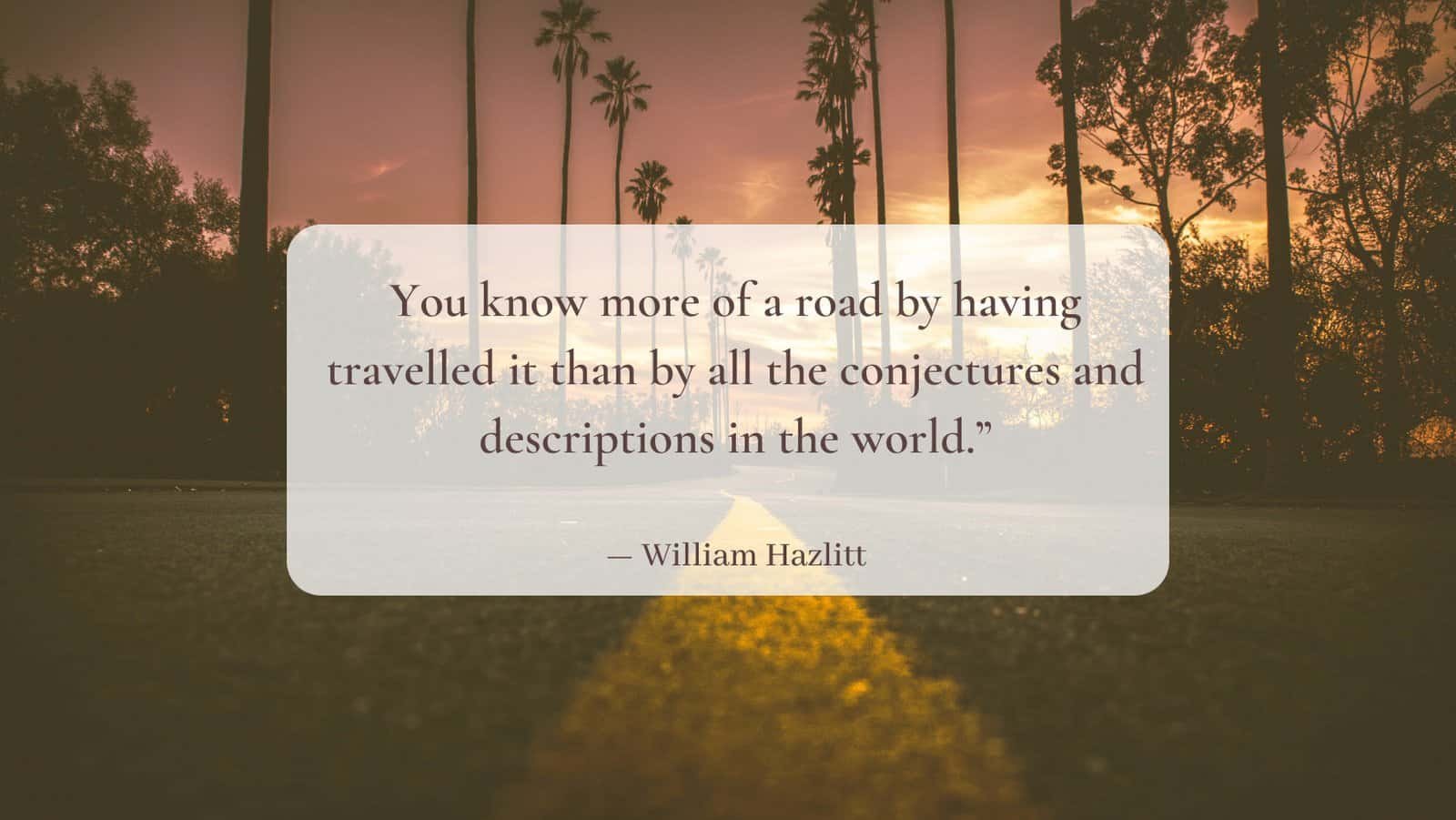 36. “You know more of a road by having travelled it than by all the conjectures and descriptions in the world.” — William Hazlitt