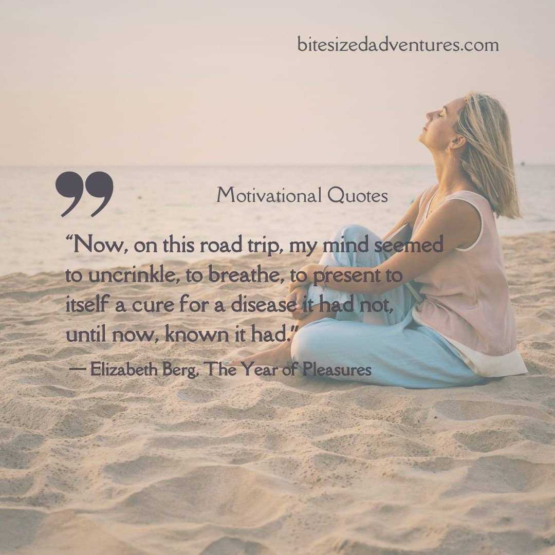 32. “Now, on this road trip, my mind seemed to uncrinkle, to breathe, to present to itself a cure for a disease it had not, until now, known it had.”